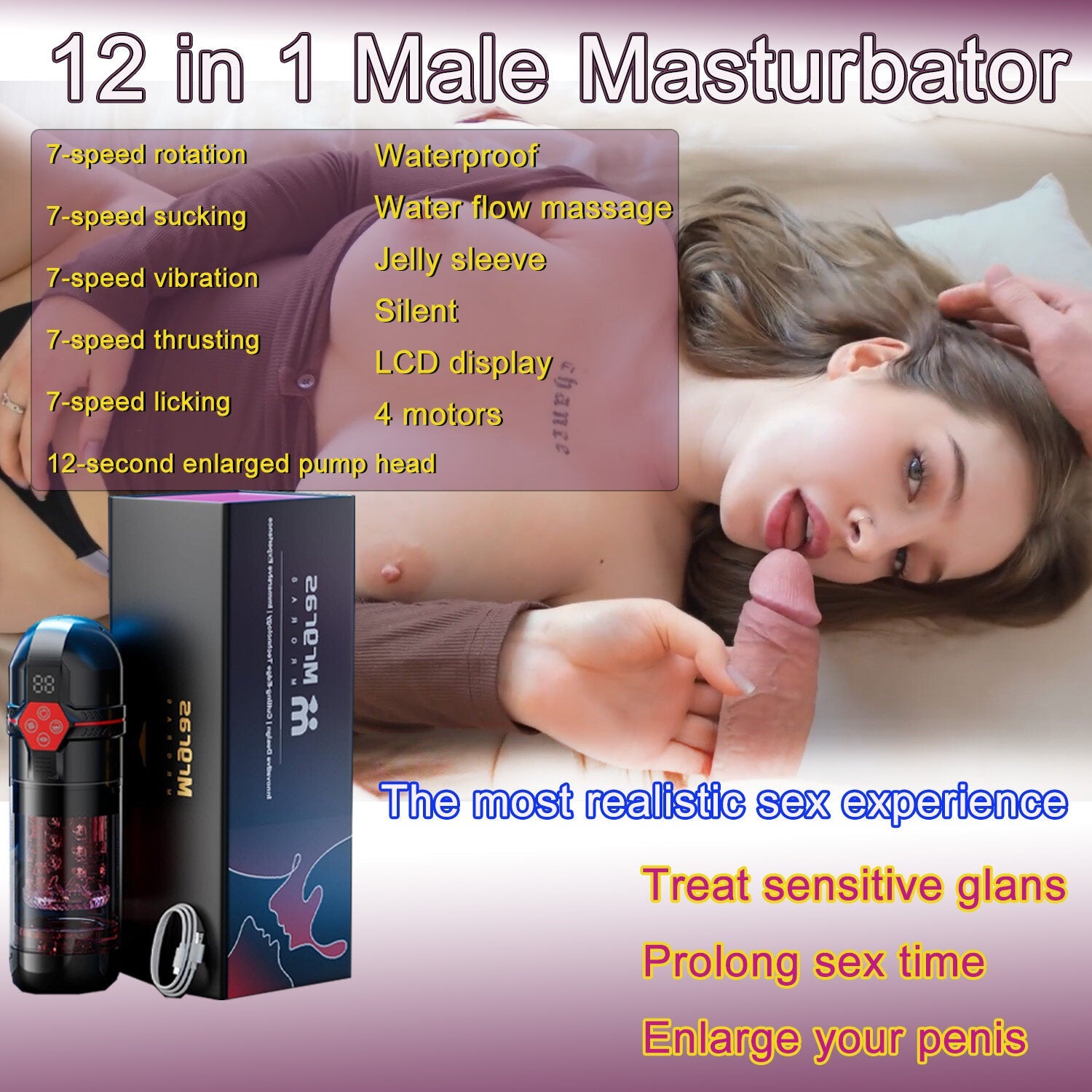 Plus special tongue teasing, treat your sensitive glans and let you last longer during sex